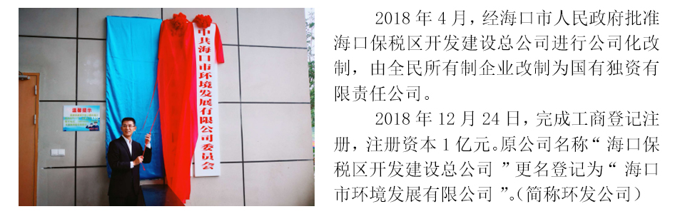 海口市環(huán)境發(fā)展有限公司是海口市屬國有獨資有限責任公司,于2018年12月正式掛牌運營,注冊資本1億元,由1993年12月成立的海口保稅區開發(fā)建設總公司進行公司化改制而成,核心業務為環(huán)境環(huán)衛產業投資和運營、資產運營和管理,培育業務為工程管理